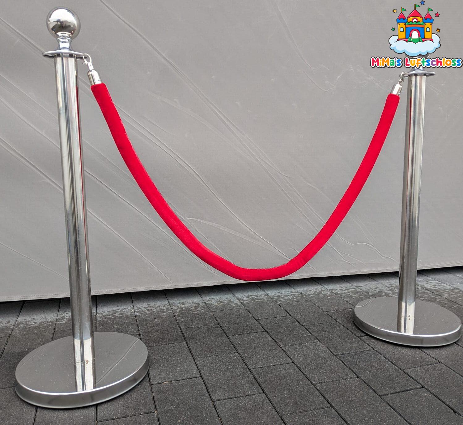 Unser silbernes Absperrsystem kombiniert Funktionalität mit Stil. Die edlen Edelstahlpfosten und die kräftig roten Samtkordeln schaffen eine klare, repräsentative Abgrenzung – ideal für Events, Eingangsbereiche, Messen oder Ausstellungen. Ein Blickfang, der Ordnung schafft und zugleich Aufmerksamkeit weckt.